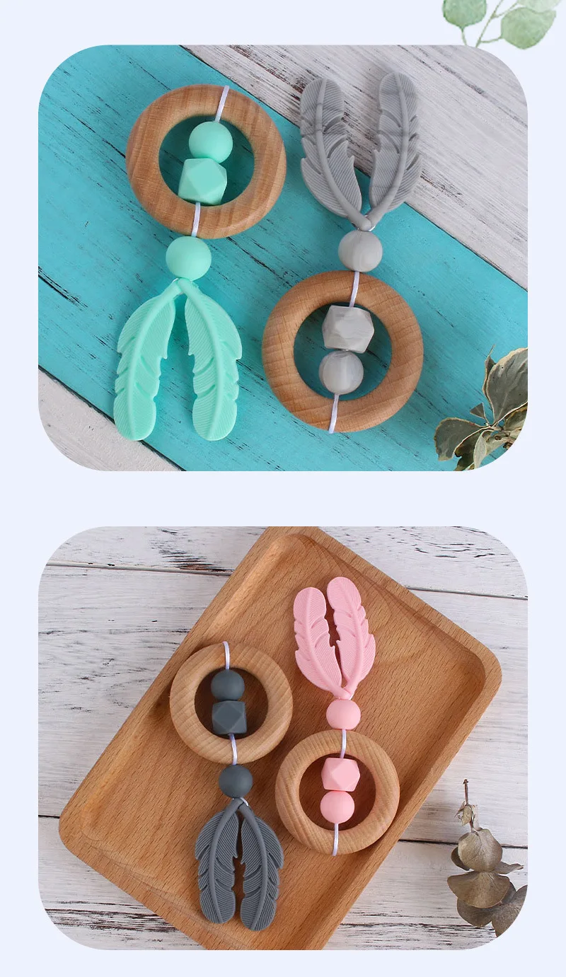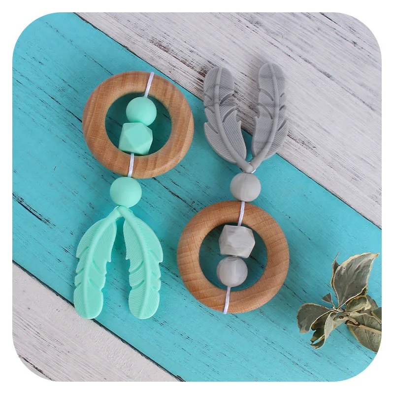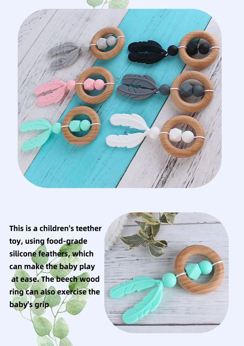 Зубное кольцо из бука, 6 цветов, без бисфенола