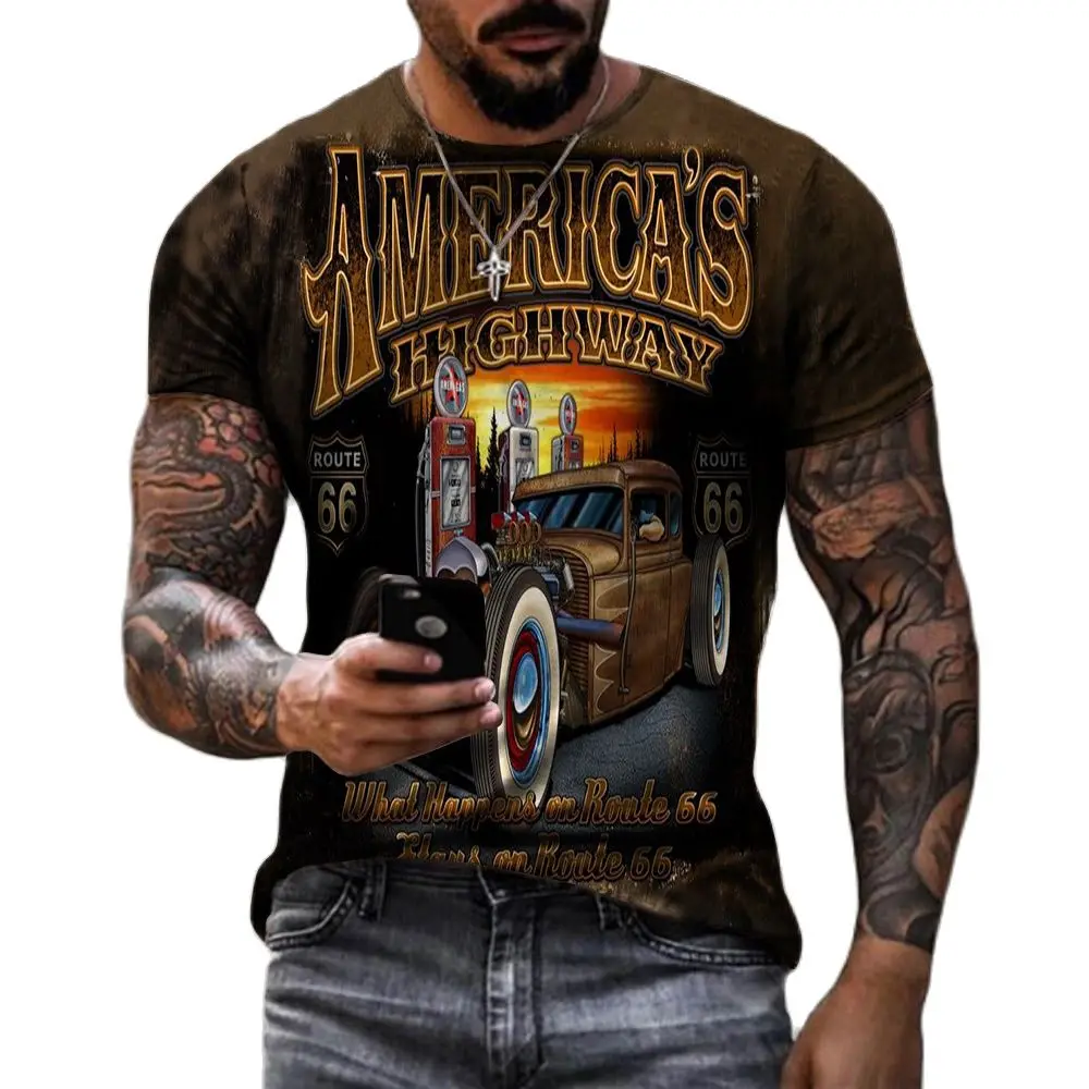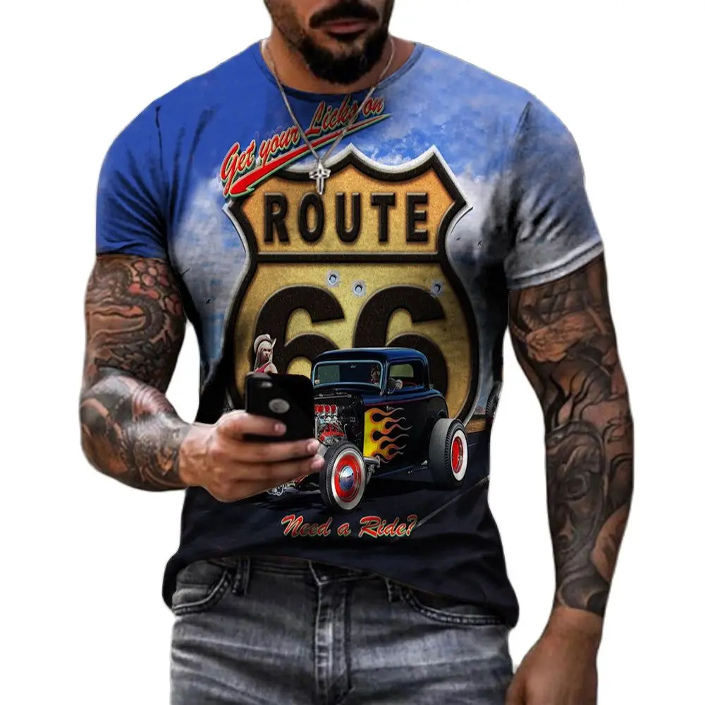 66 футболка в американском стиле дороги, спортивная одежда с 3D-при...