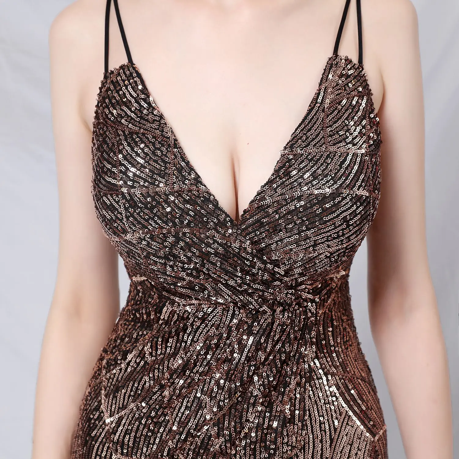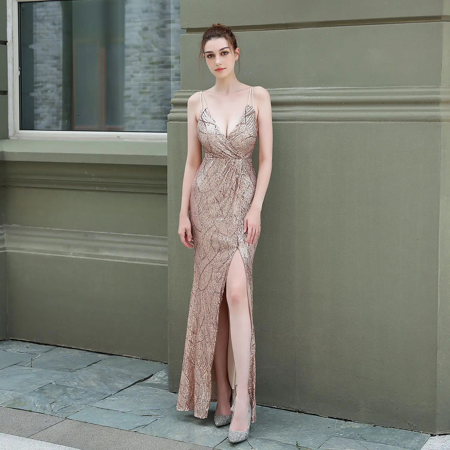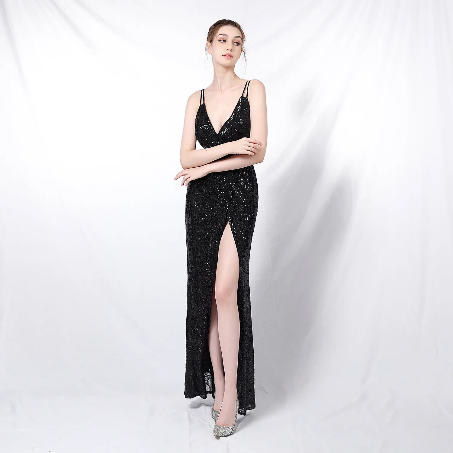 Модные сексуальные красные блестящие Длинные вечерние платья на бретельках, коктейльные платья с глубоким V-образным вырезом, высоким разрезом и открытой спиной, платья для выпускного вечера