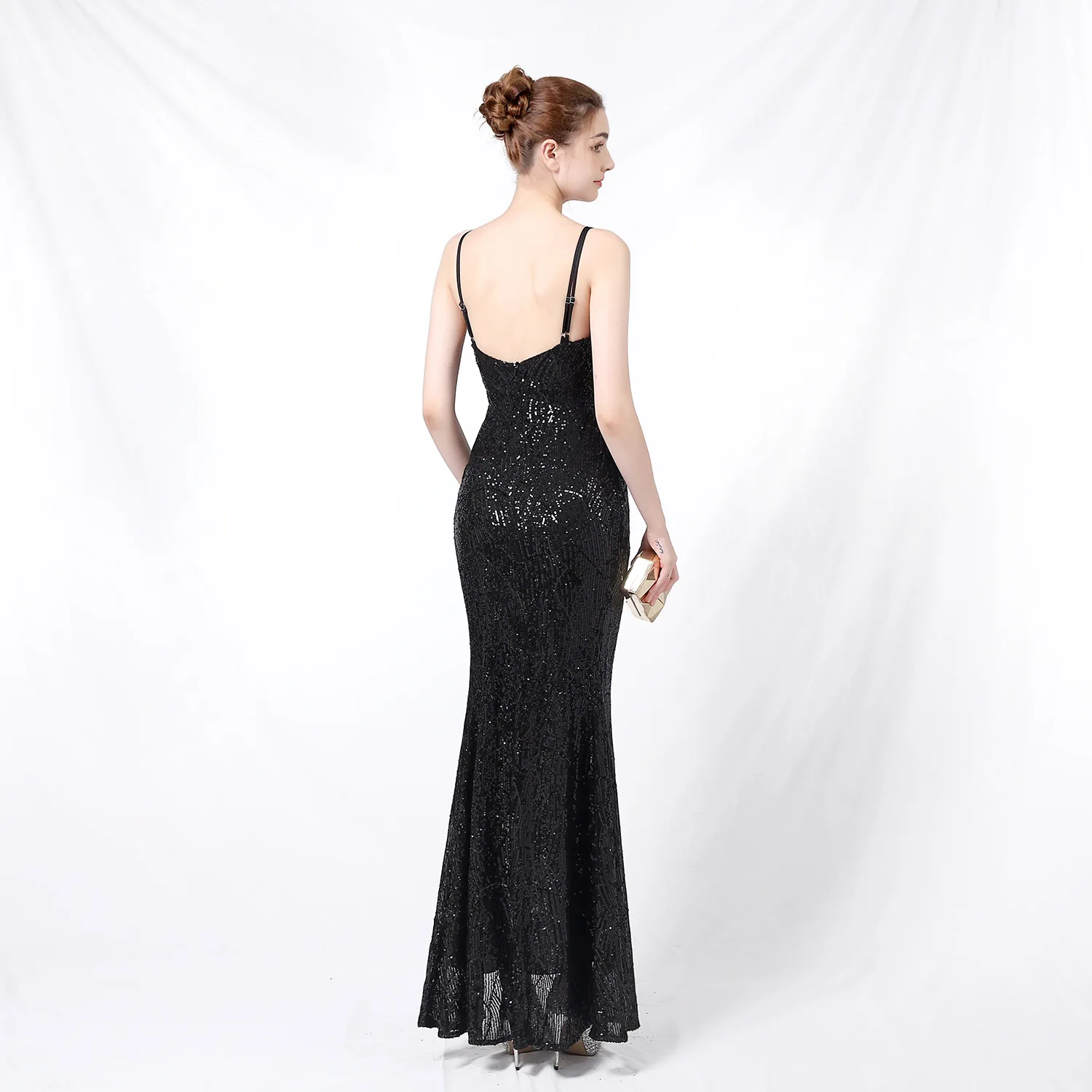 Женское коктейльное платье, черное блестящее вечернее платье-Русалк...