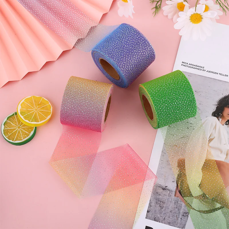 Перо: блестящий в горошек серебряный дизайн, Радужный Тюль в рулонеИспользование: Свадебное украшение. Аксессуары для украшения банта. Юбка для стола. Праздвечерние чная юбка.