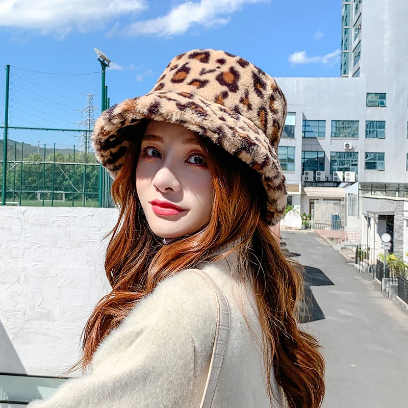 Зимняя Новая женская панама, ретро леопардовая теплая плюшевая мягкая меховая уличная Панама, шапки для рыбаков, женские головные уборы