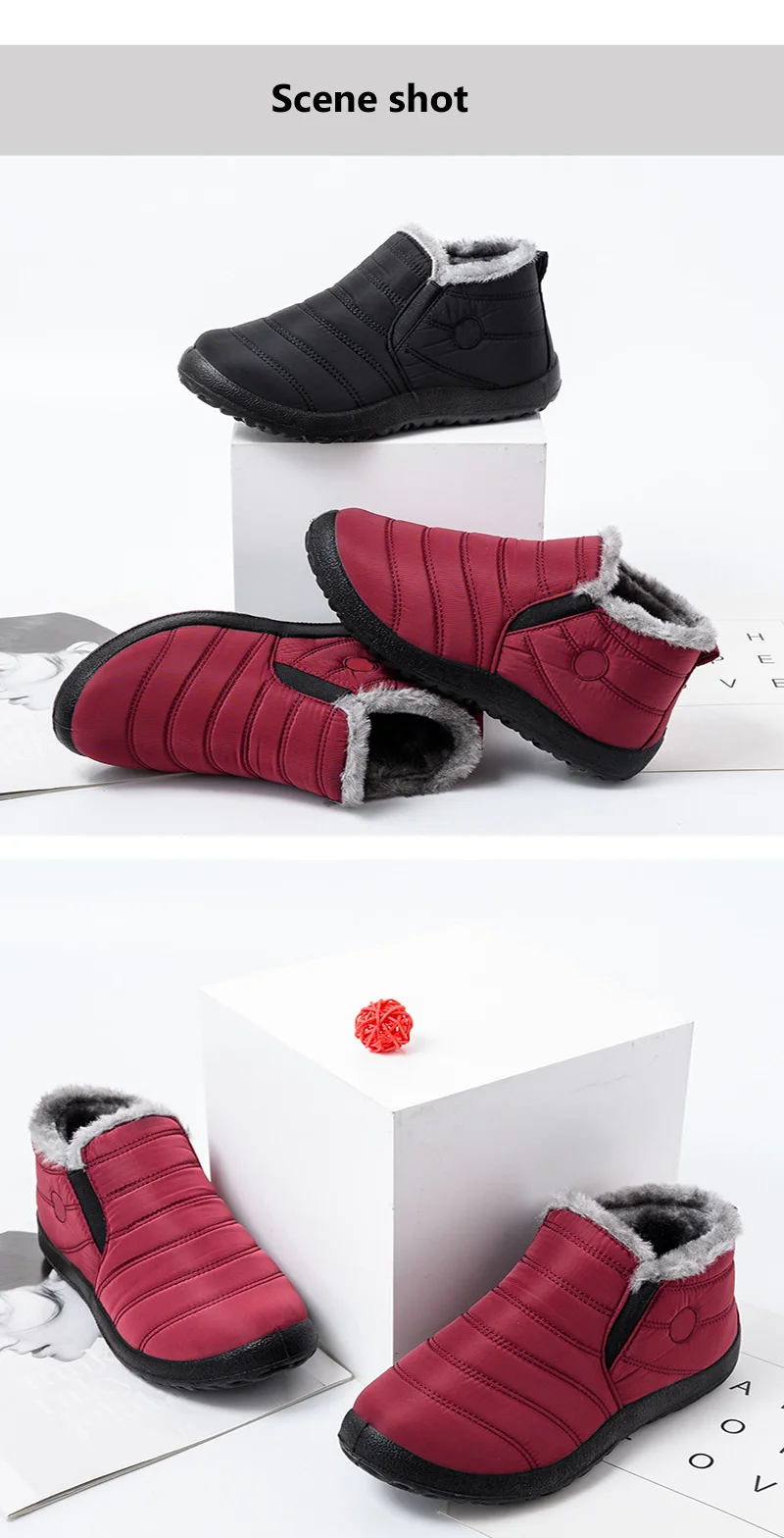 Водонепроницаемые зимние женские ботинки на плоской подошве, повседневные Зимние ботильоны, повседневная обувь для пары, плюшевая обувь, женские зимние ботинки