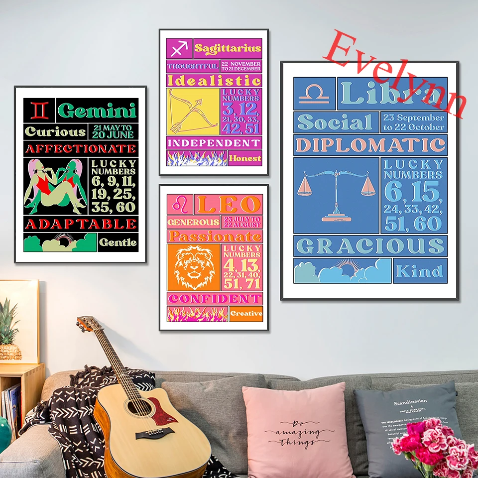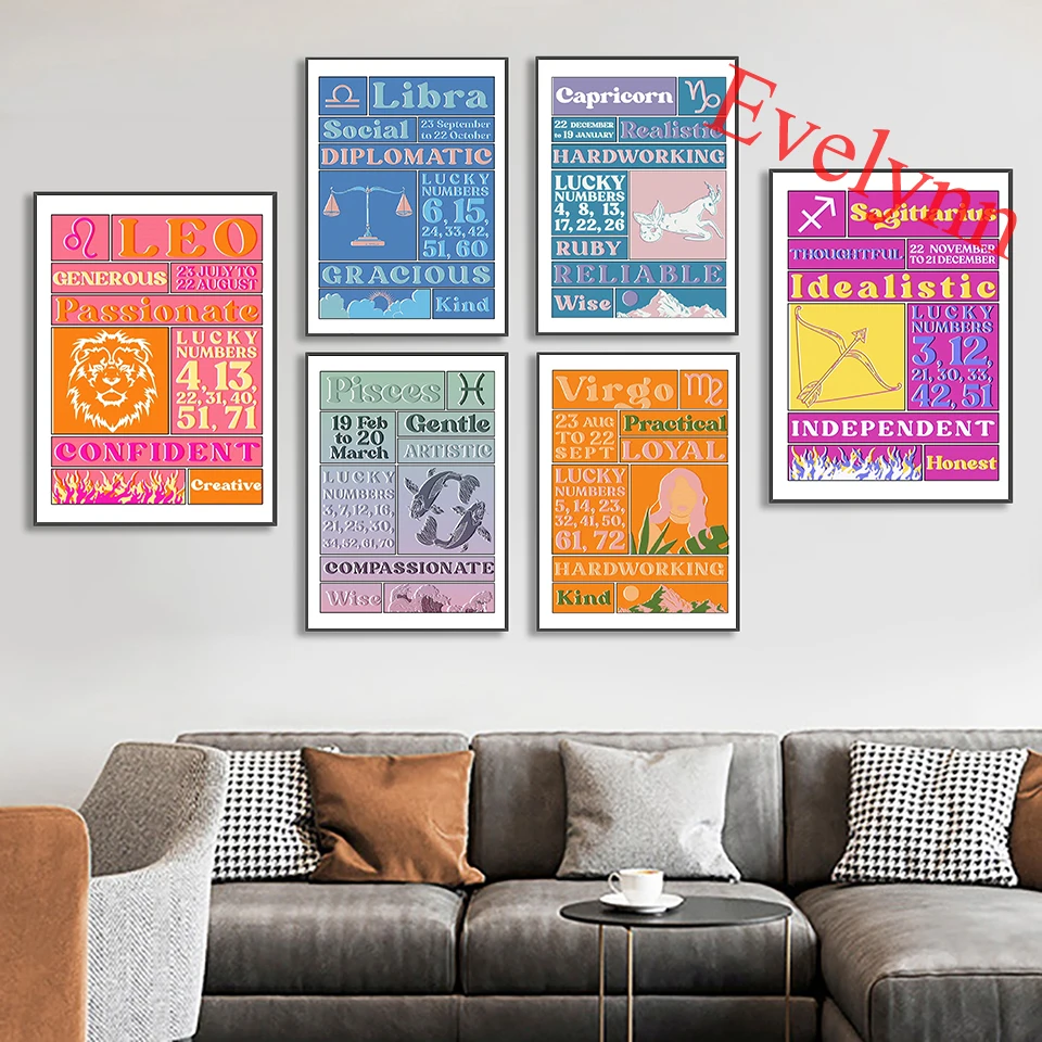 Зодиак Лев Рак Водолей Овен Дева рыбы Стрелец Козерог Близнецы Скорпион весы домашний декор холст стены искусства печать плакат