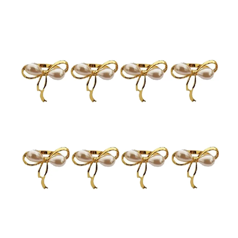 8 шт./лот обручальное кольцо для салфеток жемчужный бант Пряжка для салфеток металлическое покрытие кольца для салфеток праздничные вечерние украшения для рабочего стола