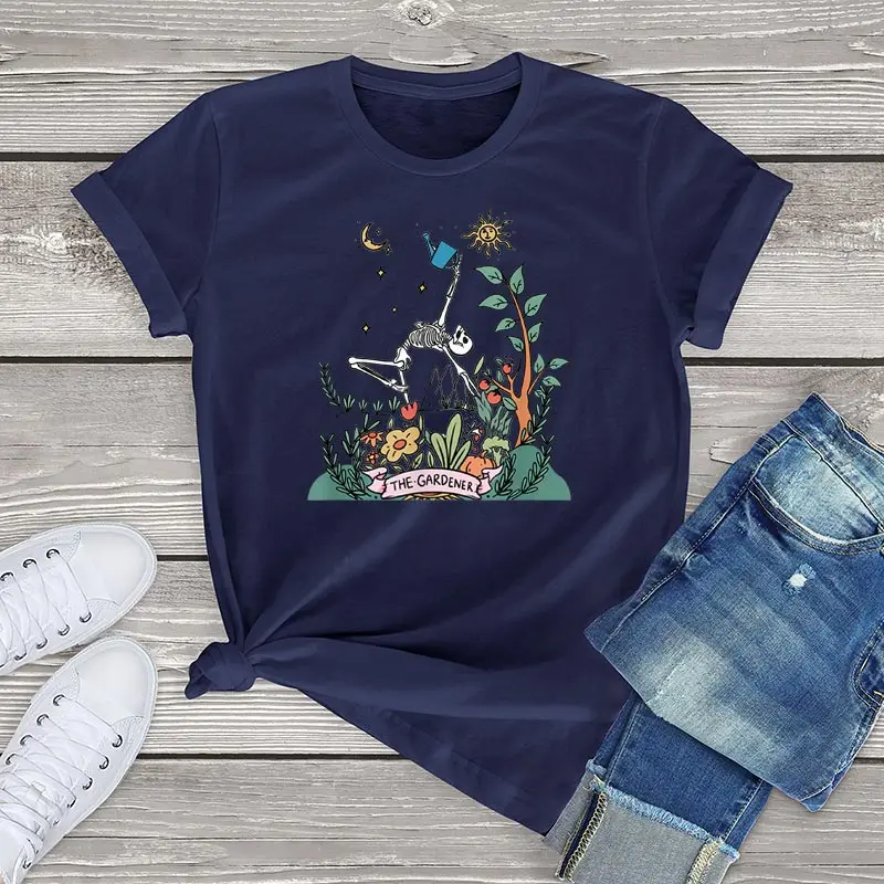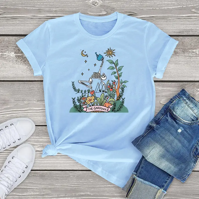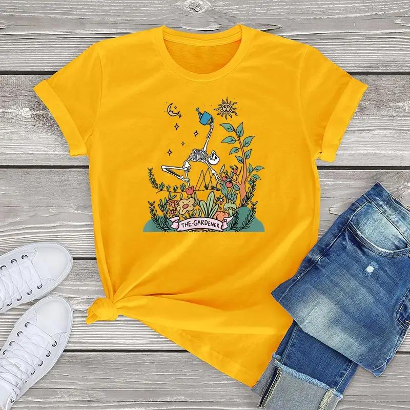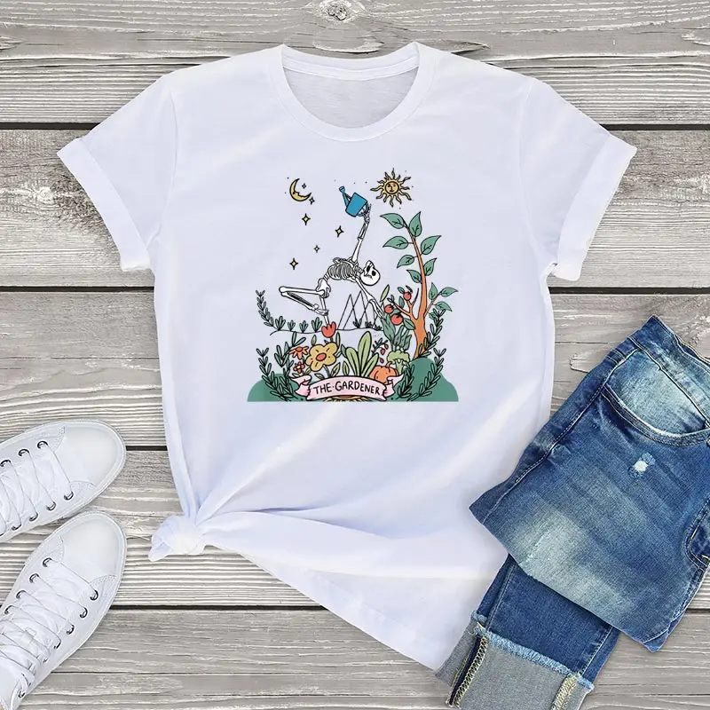 Футболка женская с коротким рукавом, смешной Графический топ с цветочным принтом, топ с рисунком садового Таро, карточки, скелета, одежда в стиле унисекс, Харадзюку