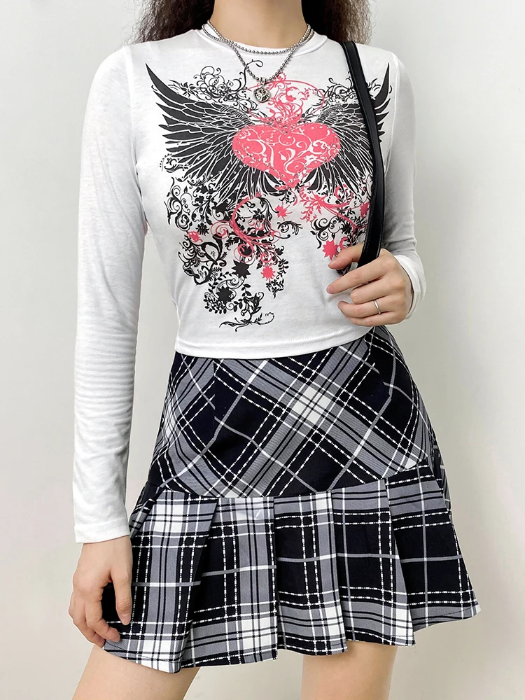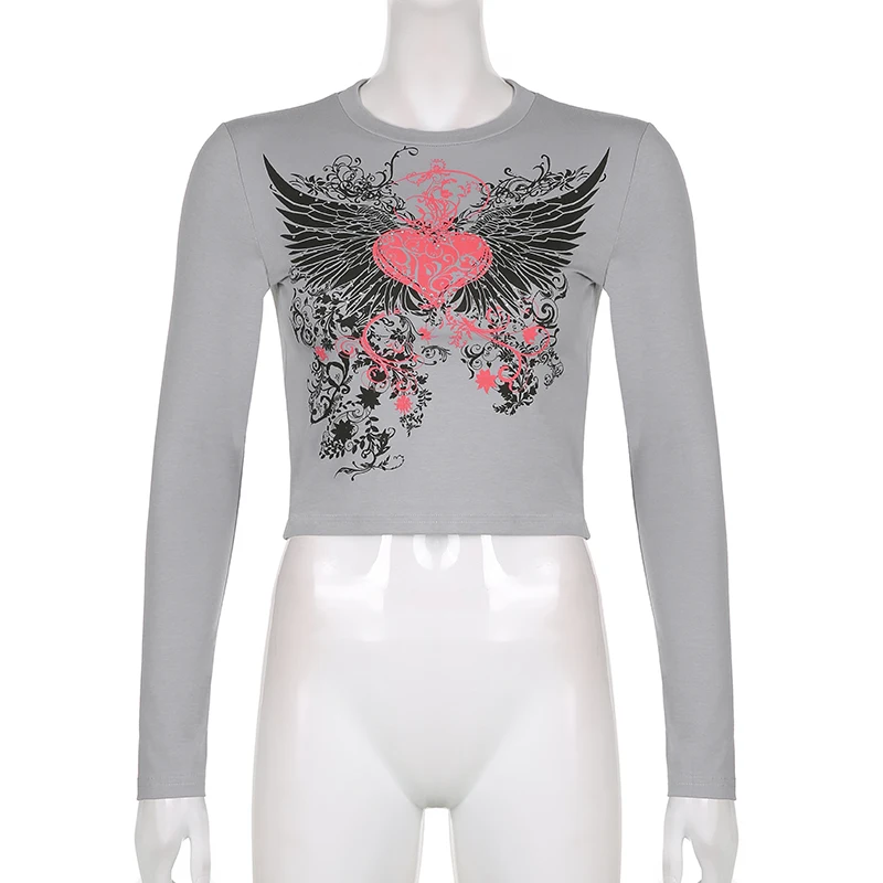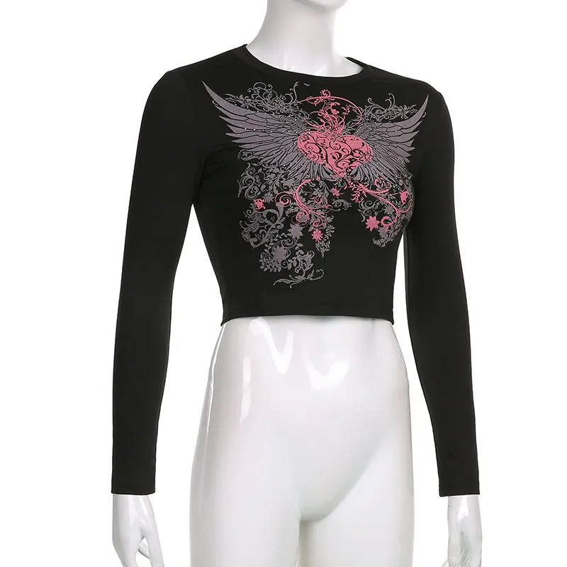 Женская футболка с длинным рукавом HEYounGIRL, черная футболка с принтом сердца в стиле 1920-х годов, модная базовая футболка в стиле Харадзюку