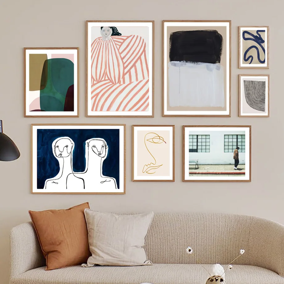 Минимализм абстрактная девушка геометрический пейзаж линия скандина...
