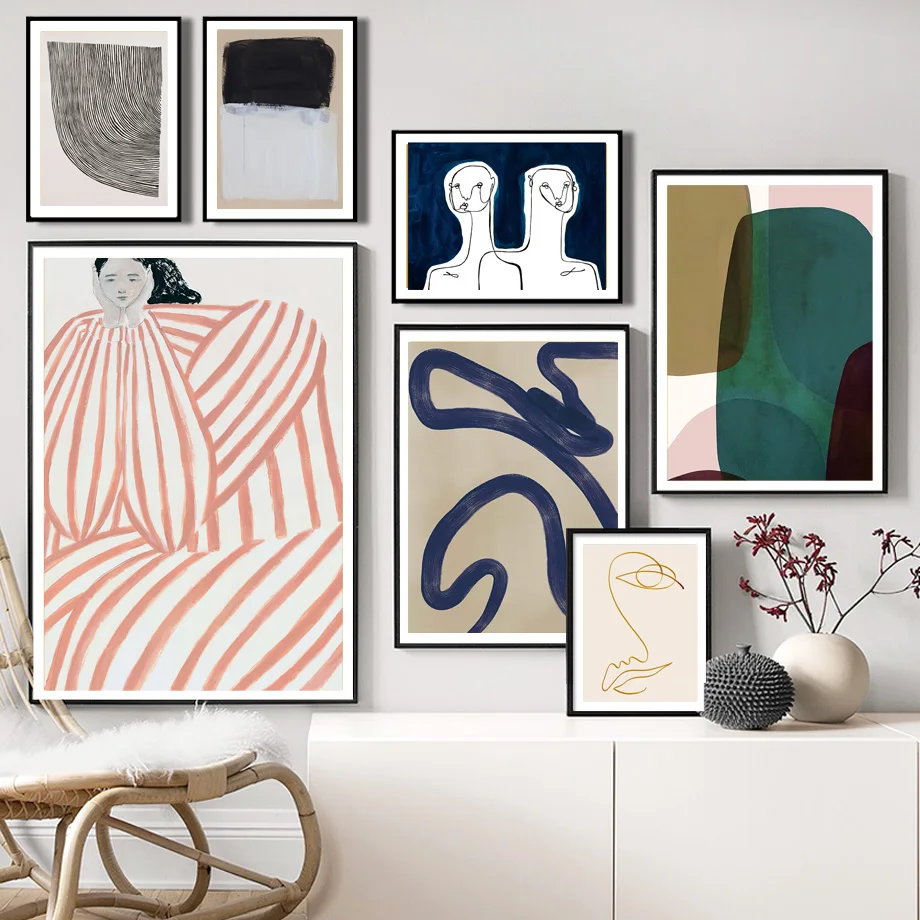 Абстрактное Полосатое платье для девочек, рисунок в виде линии, геометрические рисунки на стену, Картина на холсте, скандинавский постер, Декор, фотографии для гостиной