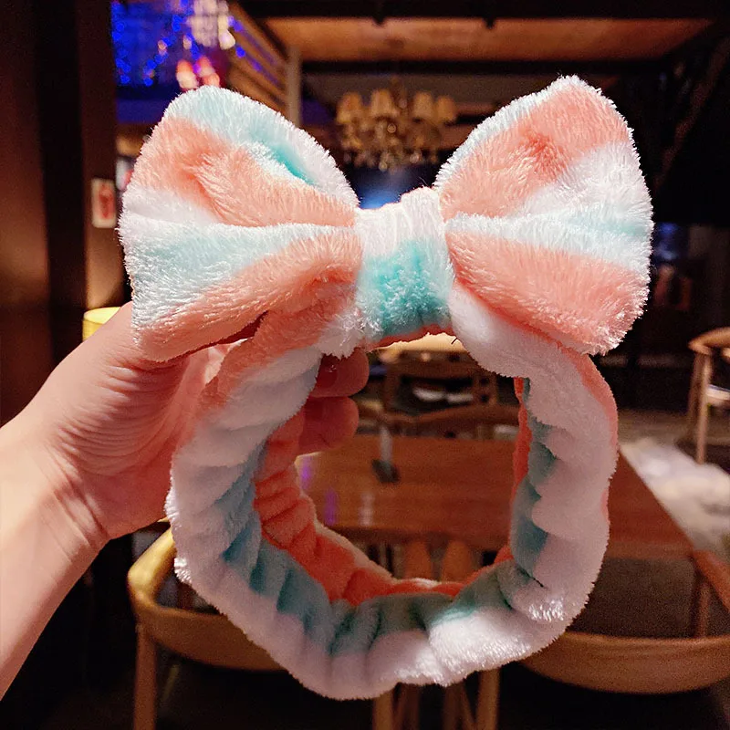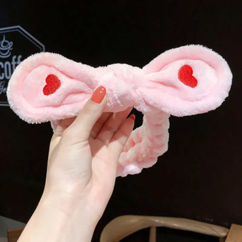 Повязка для волос для мытья лица, мягкая теплая повязка на голову из кораллового флиса с бантом и ушками животных для женщин и девочек, тюрбан, модные аксессуары для волос