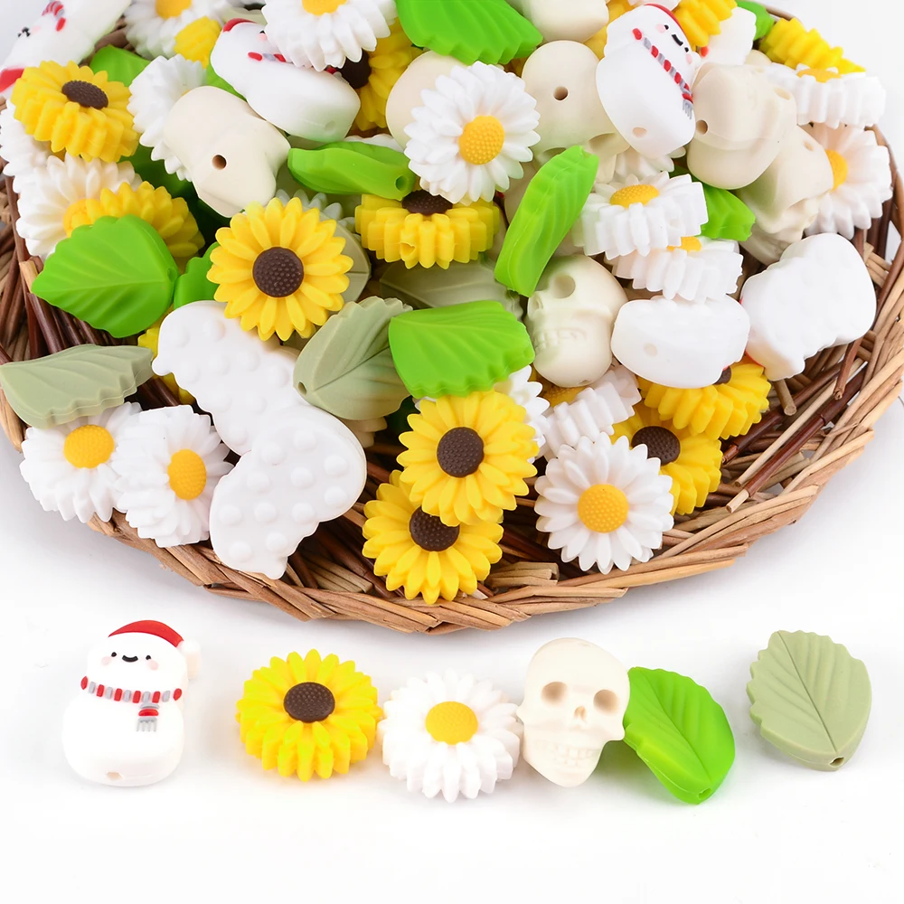 5 шт., силиконовые бусины LOFCA в виде маргаритки и подсолнуха