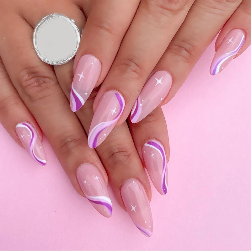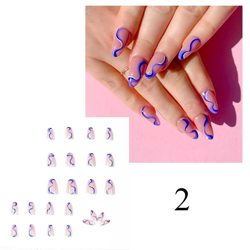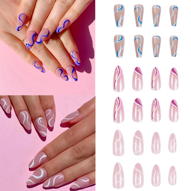 Съемные накладные ногти миндаля, розового и белого цветов, 24 шт.коркор., волнистые стильные искусственные ногти, гвозди балерины, инструмент для маникюра с полным покрытием