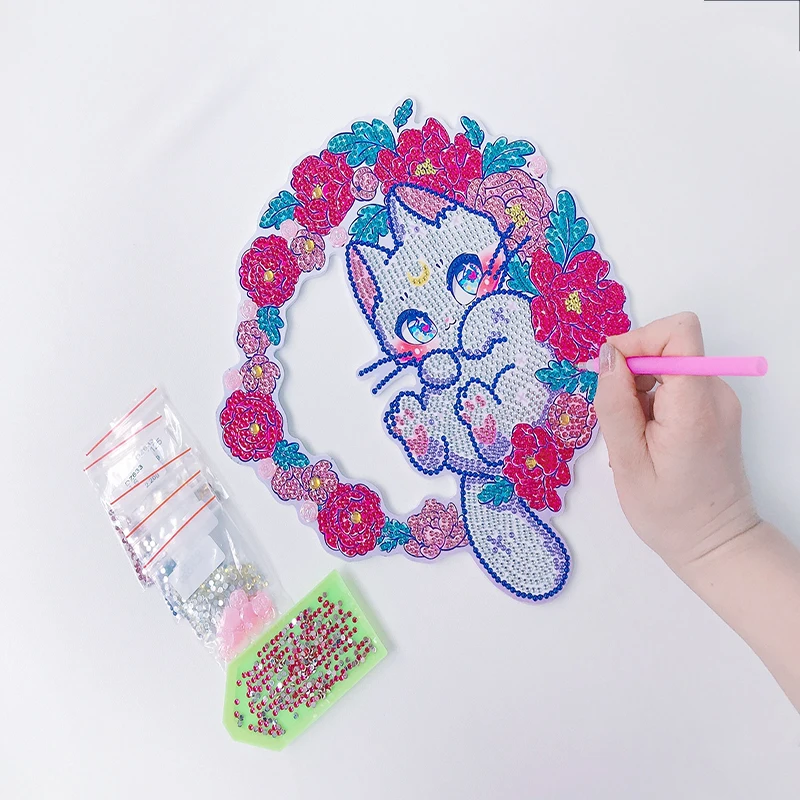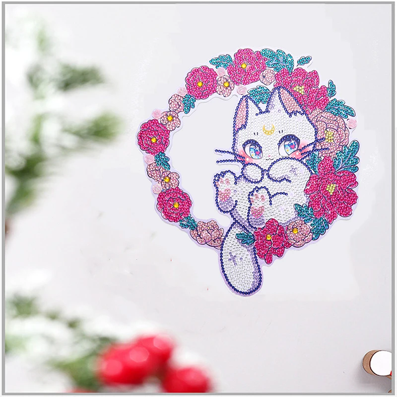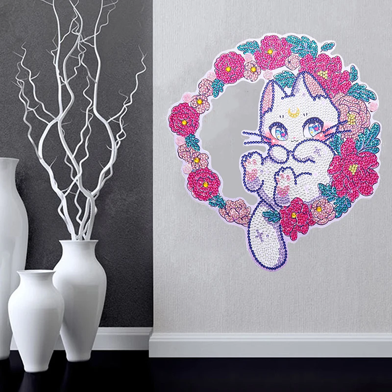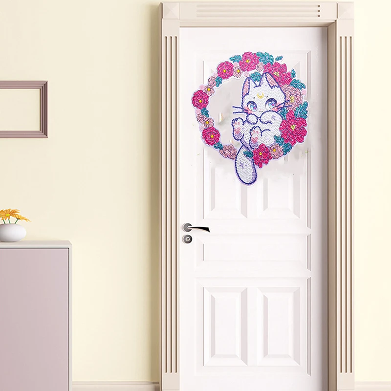 5d DIY модный венок сказочного кота, алмазная живопись, частичное сверло, драгоценности, вышивка крестиком, украшение для стены и окна