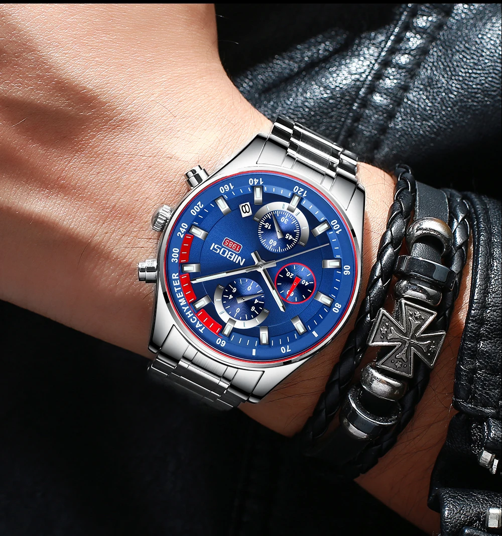 Часы наручные NIBOSI мужские из нержавеющей стали, роскошные брендо...
