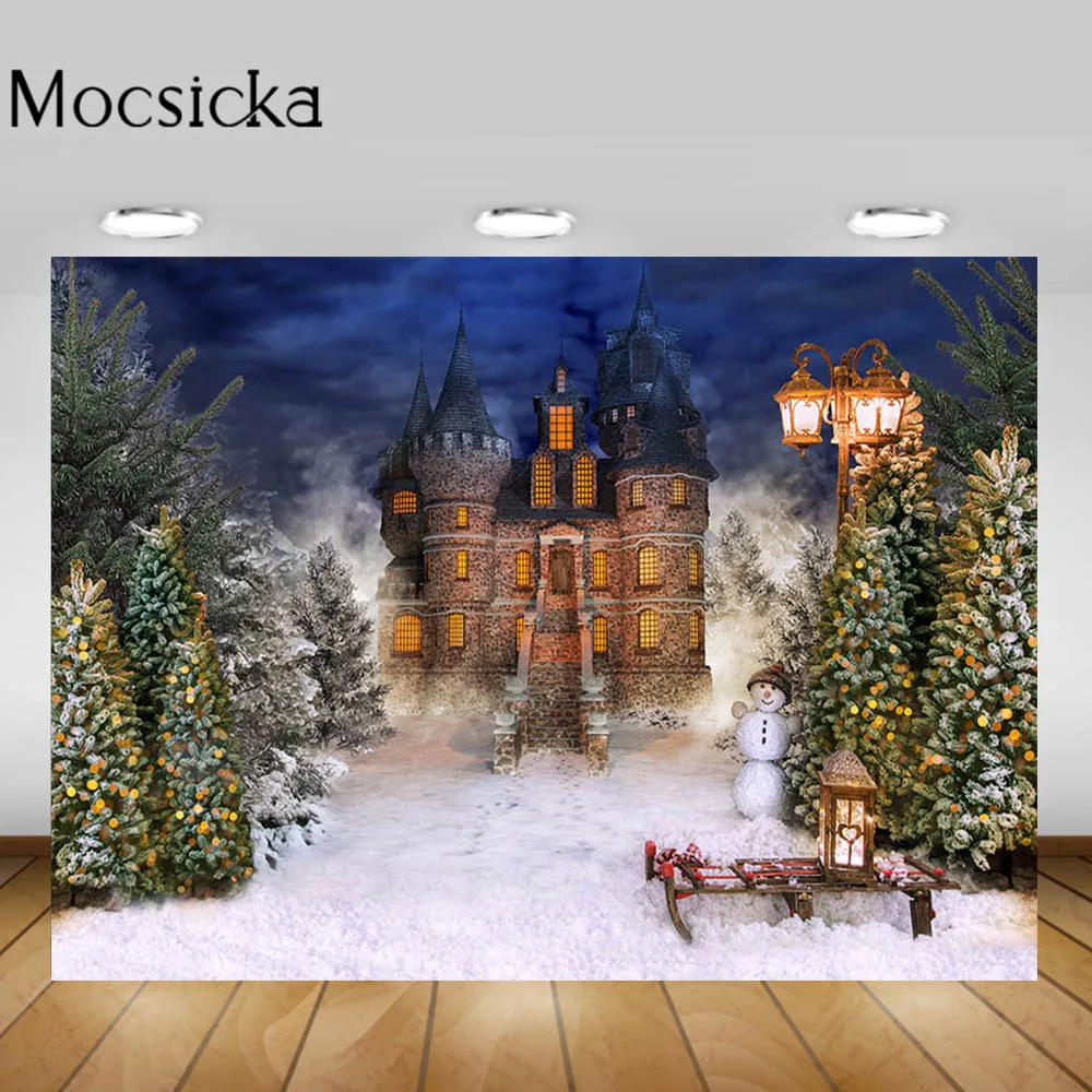 Фон для детской портретной фотосъемки Mocsicka, зимний Снежный замок в лесу, Рождественская елка
