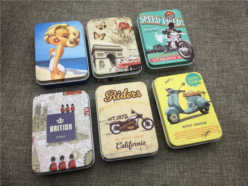 Жестяная коробка для хранения, классические прямоугольные коробки, герметичная табачная хьюмидор, упаковочный чехол, ювелирные изделия, органайзер для монет, металлический чехол для сигарет