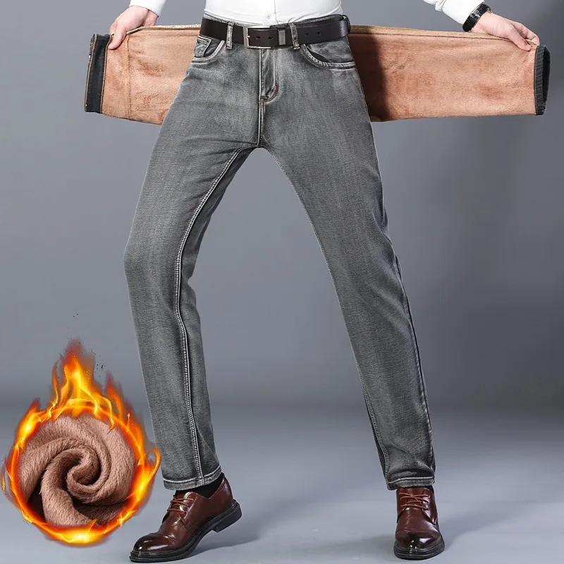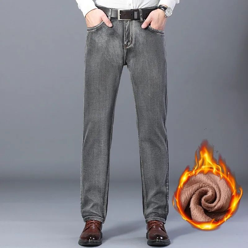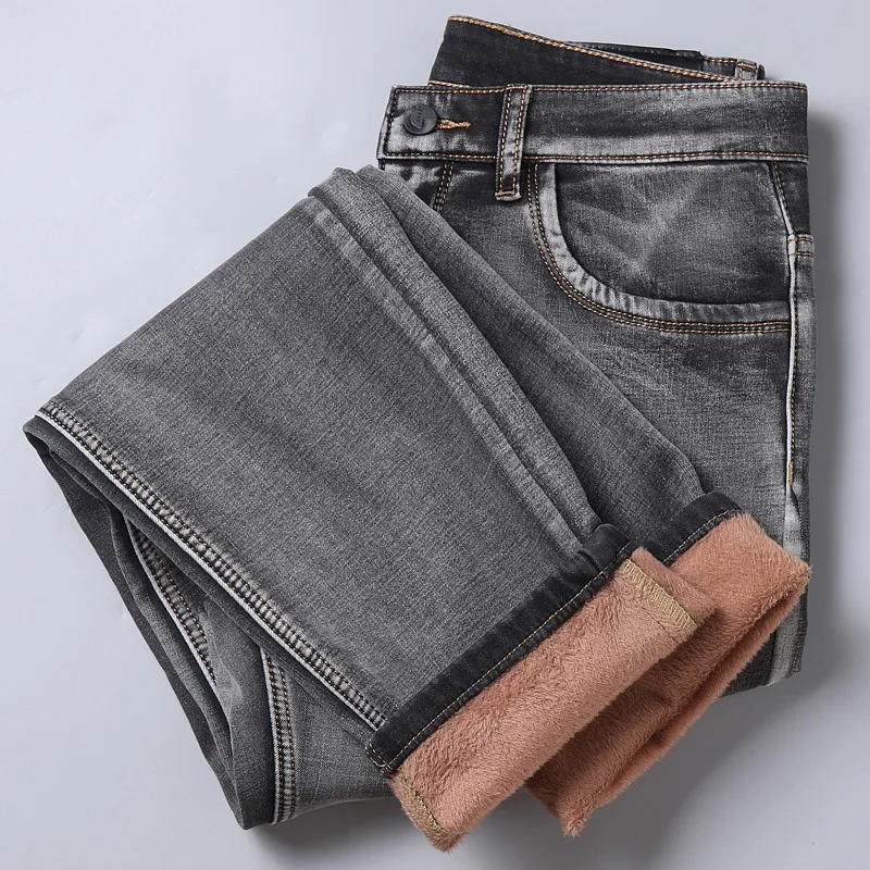 Мужские зимние теплые флисовые джинсы модные повседневные классичес...