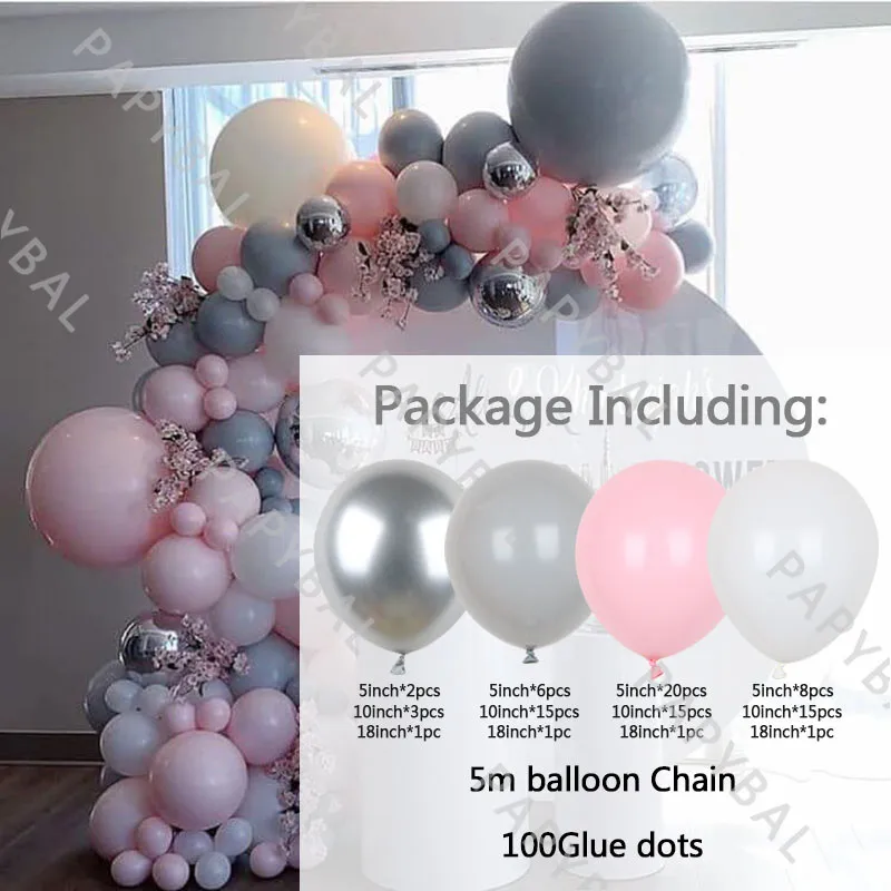 Набор воздушных шаров из латекса, комплект из 95 белых розовых шаро...