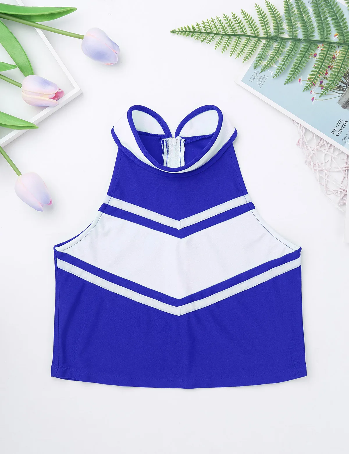 Особенности:Костюм изготовлен из полиэстера и спандекса, рекомендуется ручная стирка.Таблица размеров означает возраст для девочек, но только для общего руководства.Без рукавов, воротник-стойка, скрытая застежка-молния сзади для удобства одевания. Мягкая ткань, удобная в носке.Юбка с широким эластичным поясом и гофрированным дизайном. Красивый костюм Болельщицы для вашей девочки.Хороший выбор для нарядов, ролевых игр, сценических костюмов, танцевальной одежды, соревнований по танцам и т. д.