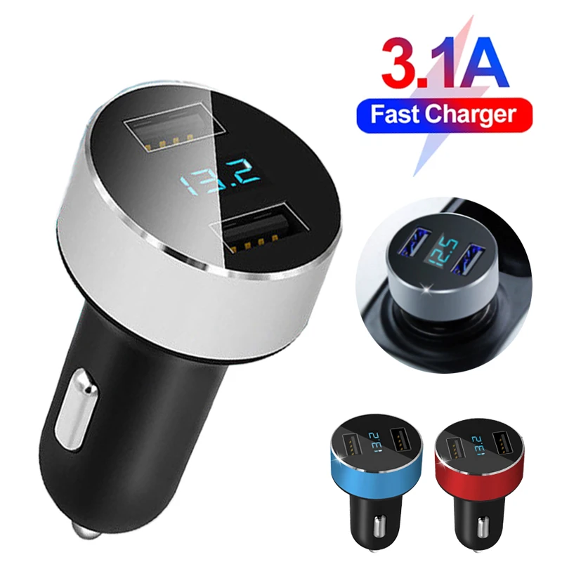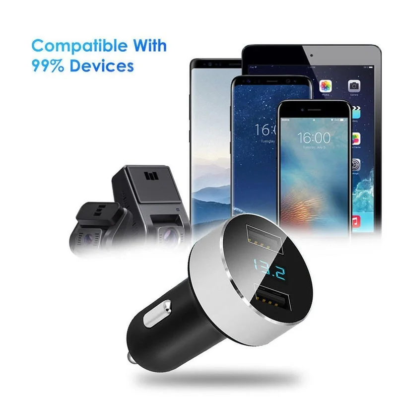 Автомобильное зарядное устройство с двумя USB-портами и светодиодным дисплеем, а