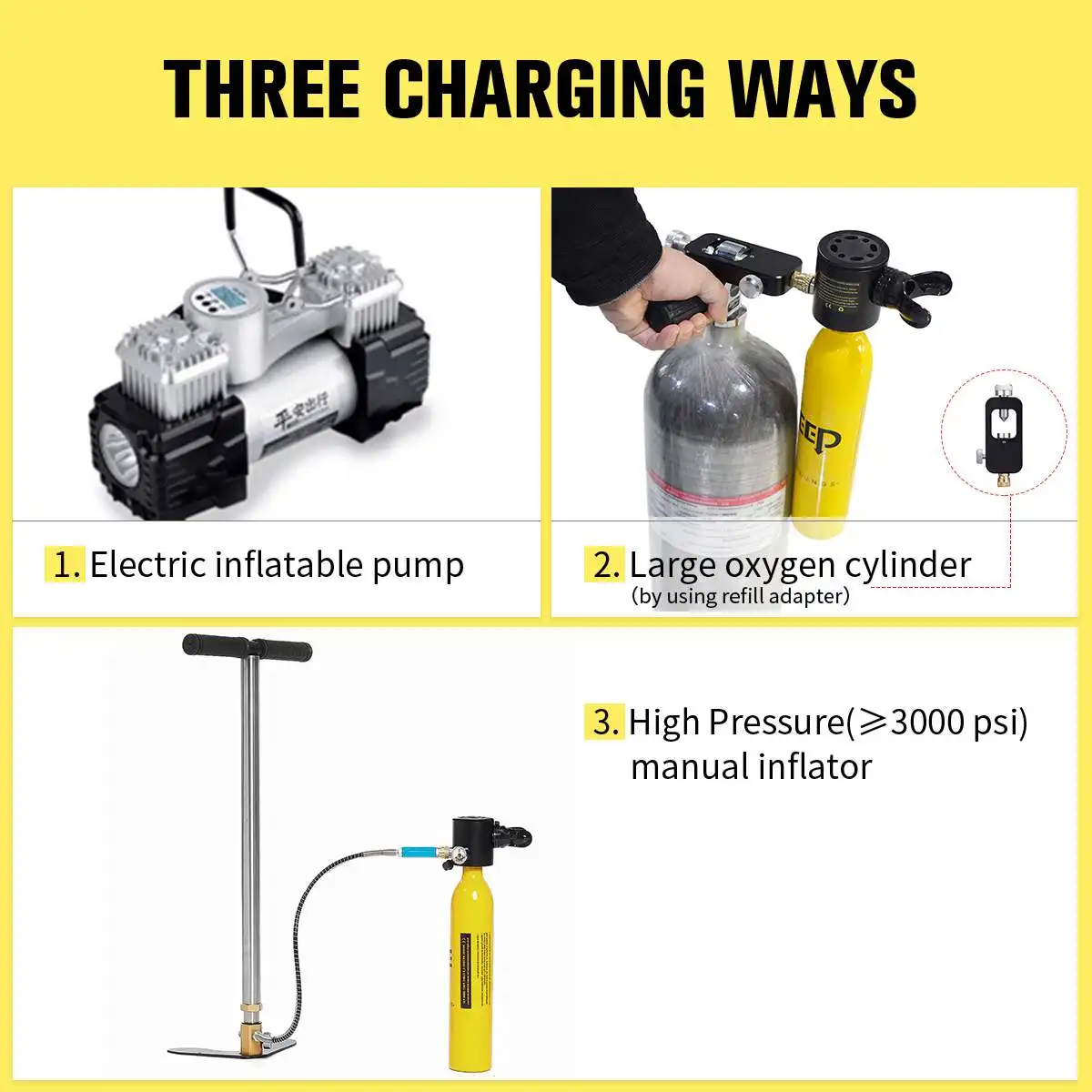 Резервуар для подводного плавания DIDEEP объемом 0,5 л, Семейный комплект, респиратор, воздушный резервуар, ручной насос для подводного плавания, оборудование для дайвинга
