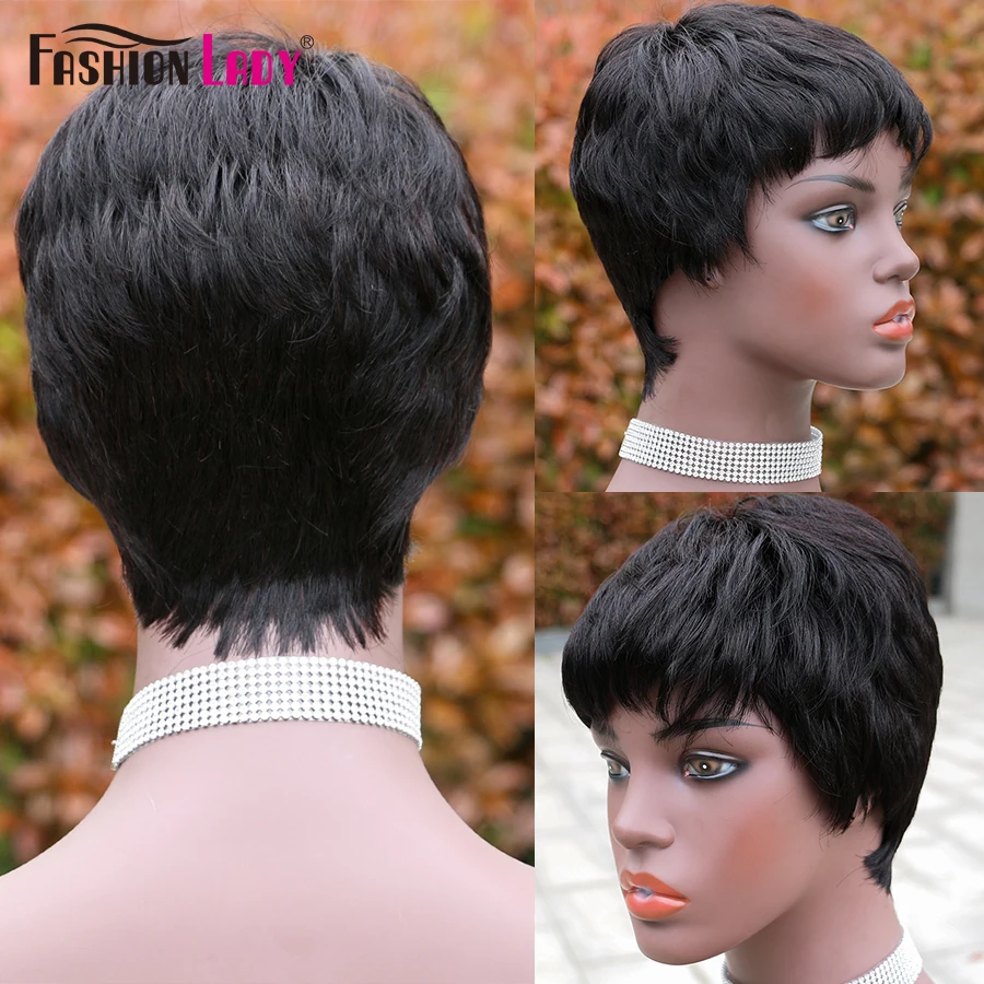 Парик из человеческих волос с коротким вырезом фея, бесклеевые перуанские прямые волосы, парики для женщин, Недорогие парики полной машинной работы, бесплатная доставка