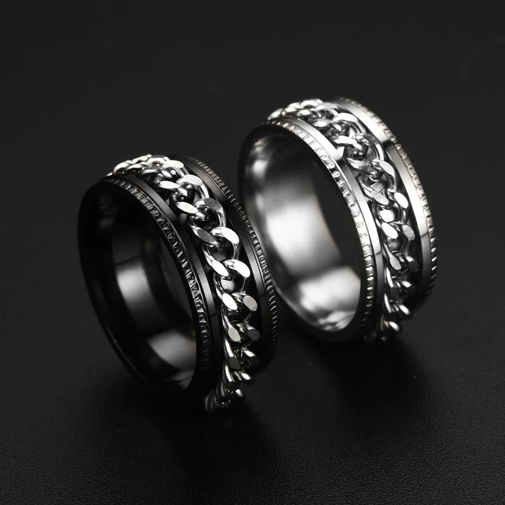 Кольцо-цепочка мужское, из титановой стали, вращающееся, в стиле панк, прядильная цепь