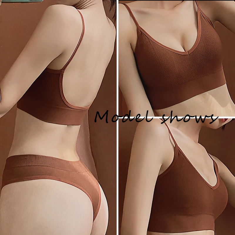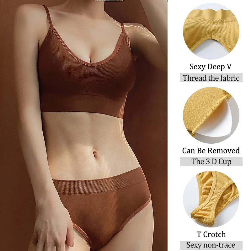 Женский комплект с бюстгальтером трусики бесшовные, сексуальные, 10 цветов, женский бюстгальтер для фитнеса, Спортивное нижнее белье, комплект с бюстгальтером с V-образным вырезом