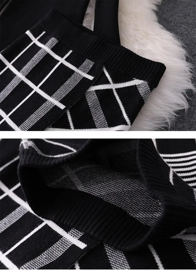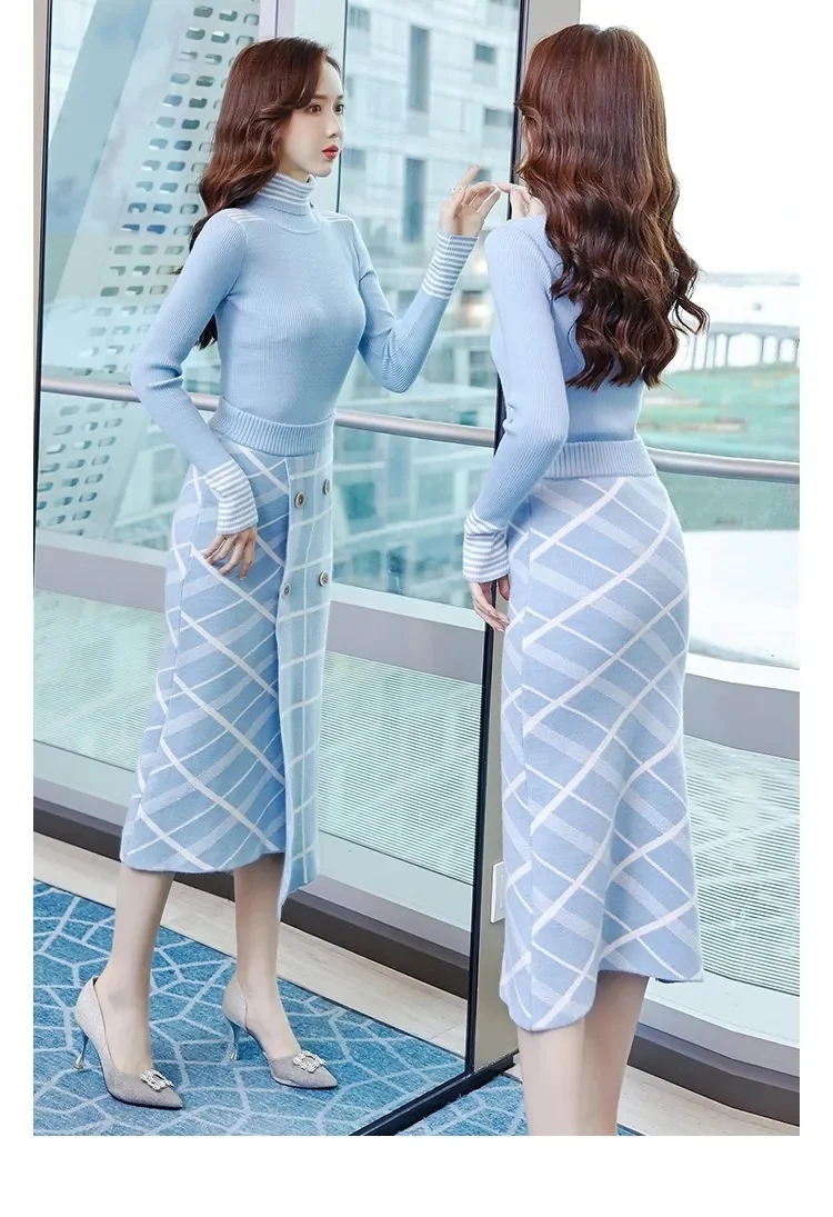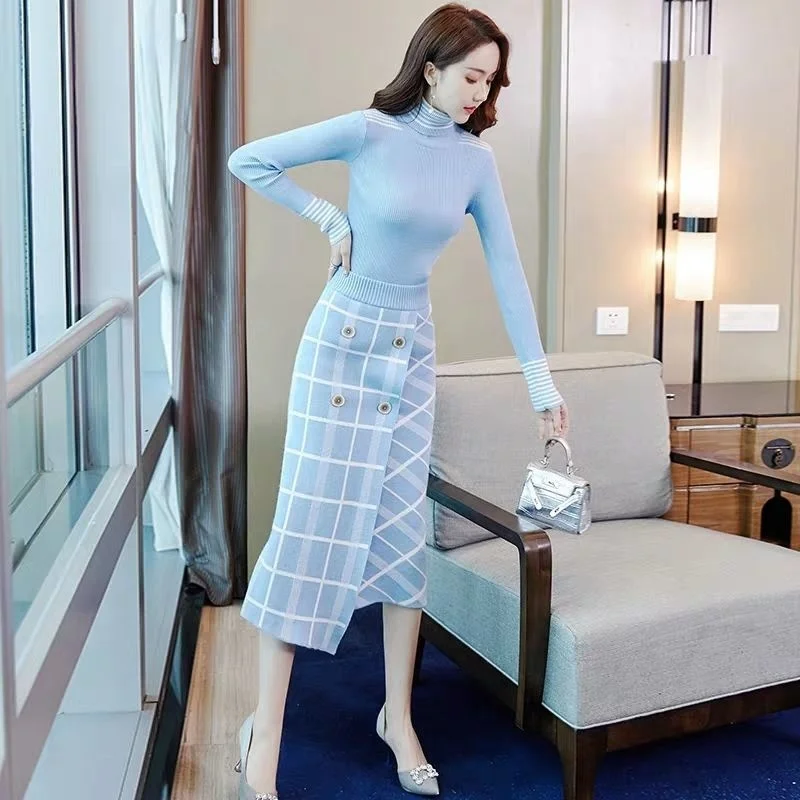 Элегантный женский осенне-зимний комплект одежды, верх и Обрезанные клетчатые вязаные юбки, костюм, офисные женские комплекты