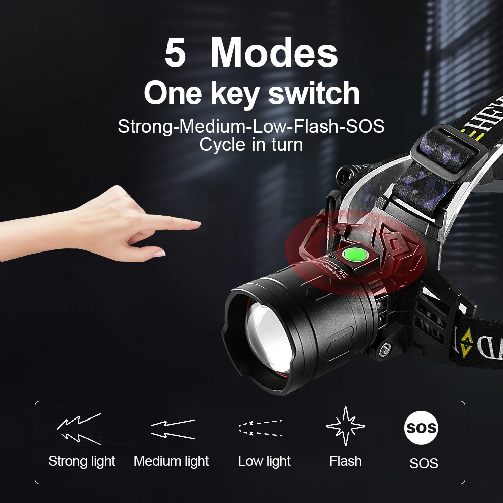 Мощный светодиодный фонарик XHP160, индукционная фара, велосипедный светодиодный фонарик, 18650, перезаряжаемая, USB-фара, фонарик для кемпинга