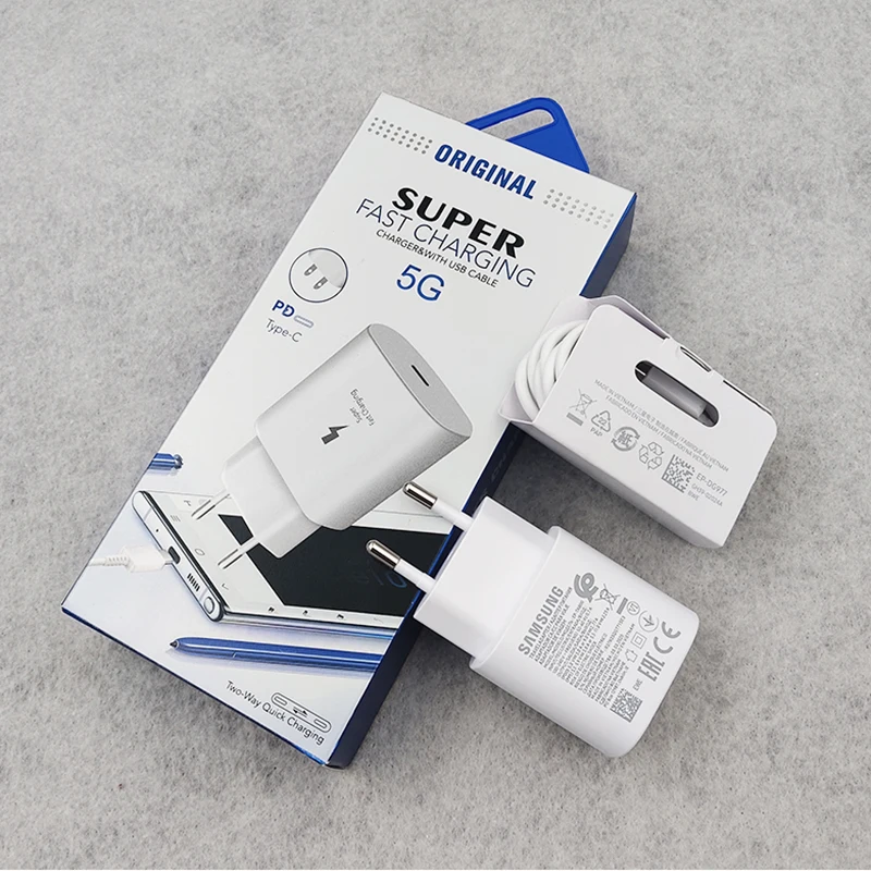 Зарядное устройство для Samsung Note 10 10 +, сетевой адаптер для быстрой зарядки, 25 Вт, PD Type C, кабель для Galaxy S21, S20 Ultra, S21FE, F52 Z Flip 2, 3, A50, A70