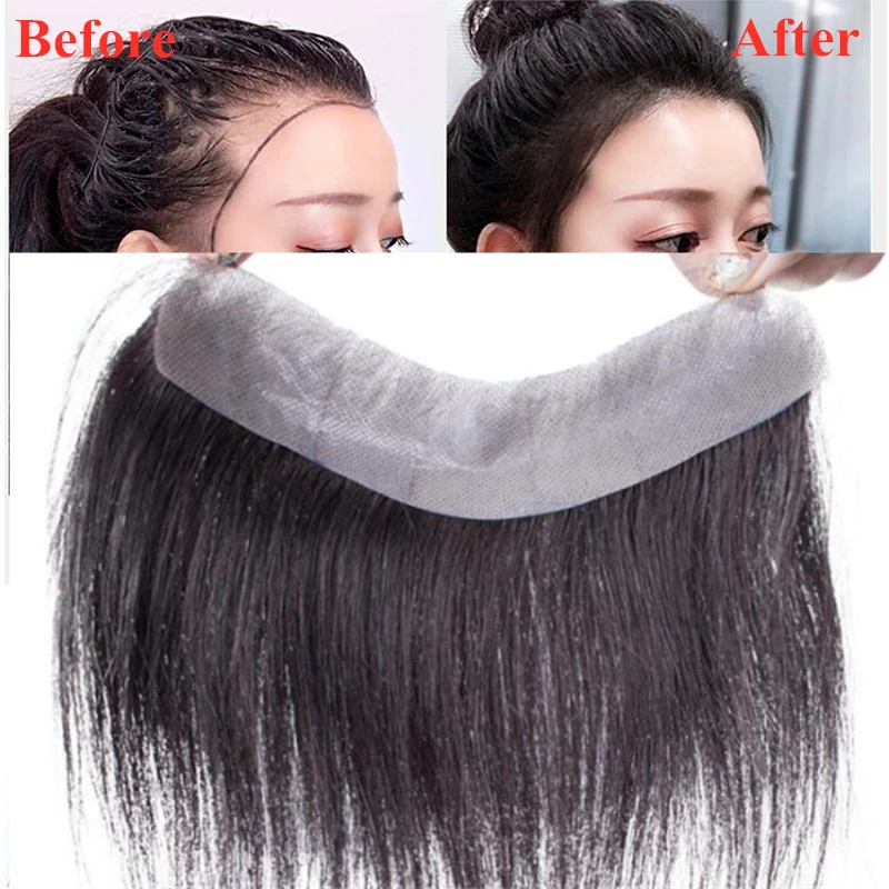 Halo Lady Natural Human Hairline система замены волос на лбу для облысения, тонкой кожи PU с лентами, не Реми, бразильский