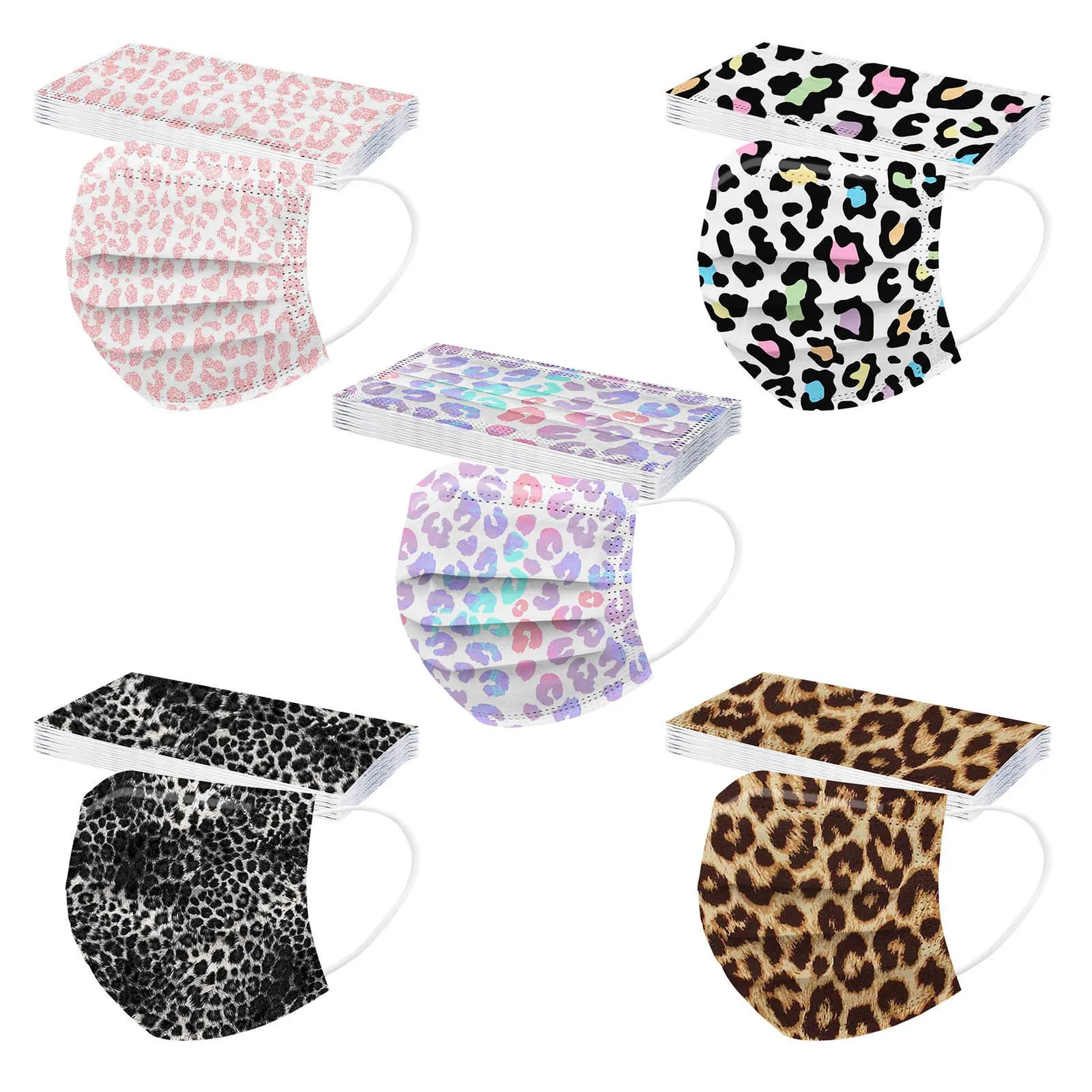 50 шт., маски для взрослых, трехслойные одноразовые маски-кариллы, пыленепроницаемые защитные маски с леопардовым принтом, респираторная маска