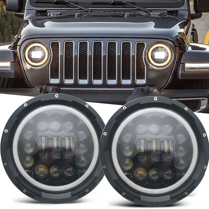 Автомобильные аксессуары 2 шт. для фар Jeep Wrangler 7 дюймов 80 Вт DRL указатели поворота для Hummer H1 H2 Land Rover Denfender 90110