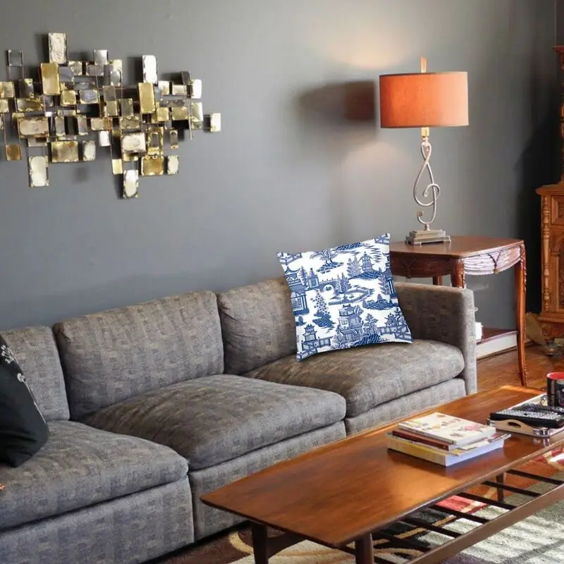 Голубая ива, древняя фотография, чехол с рисунком, китайский Рисунок, напольная подушка, чехол для дивана, крутая подушка, чехол, домашний декор