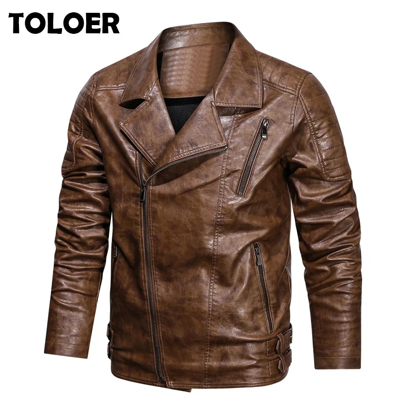 Мужская мотоциклетная куртка-бомбер, однотонная кожаная куртка на м...