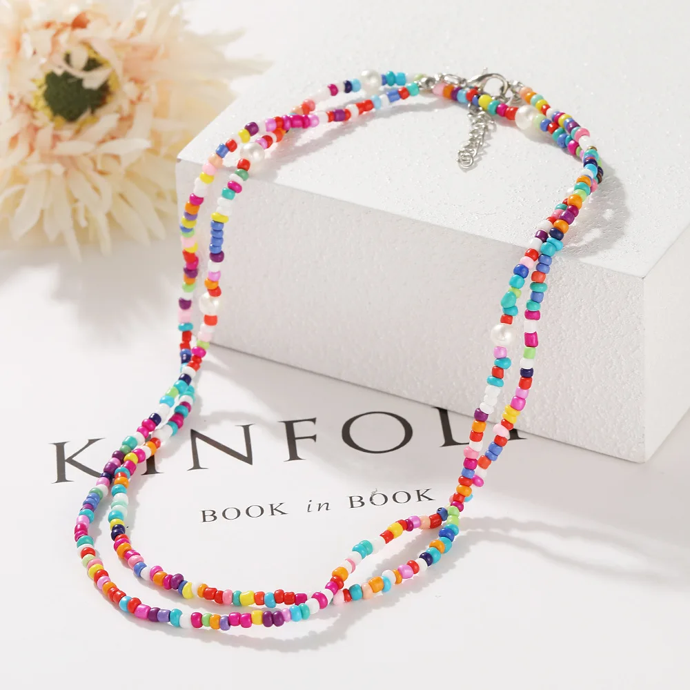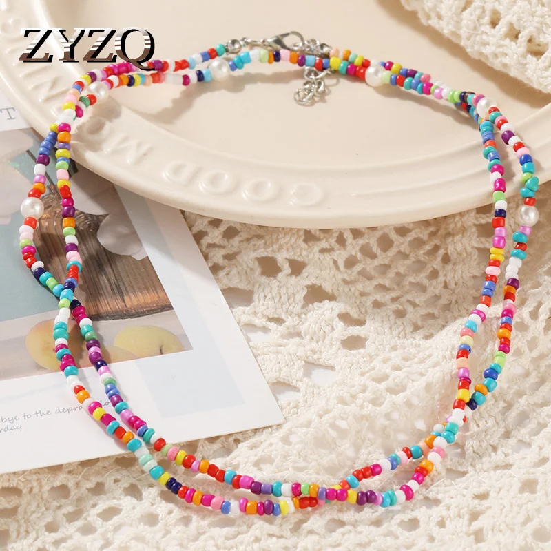 ZYZQ креативное простое цветное ожерелье ручной работы с рисовой бусиной для женщин богемное ожерелье с двойной цепочкой до ключиц модные ювелирные изделия аксессуары