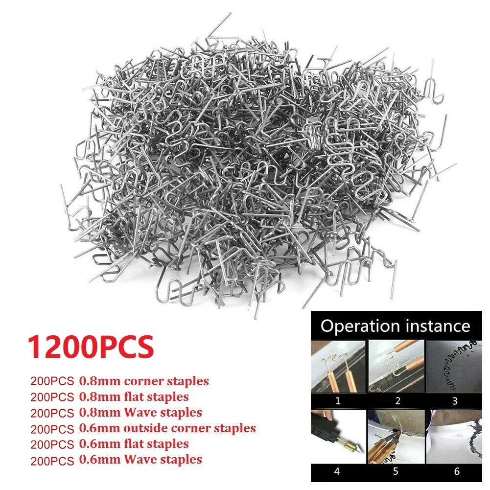1200 шт. горячий степлер, пластиковый инструмент для ремонта, предрезанных фотоэлементов, сварщик пластика, инструмент для ремонта бампера автомобиля, 0,60,8 мм, угловые плоские волнистые скобы