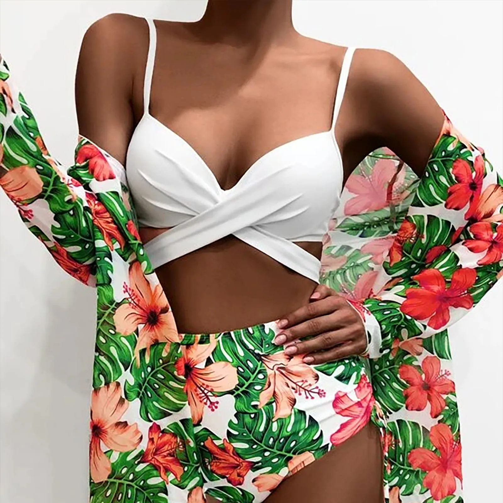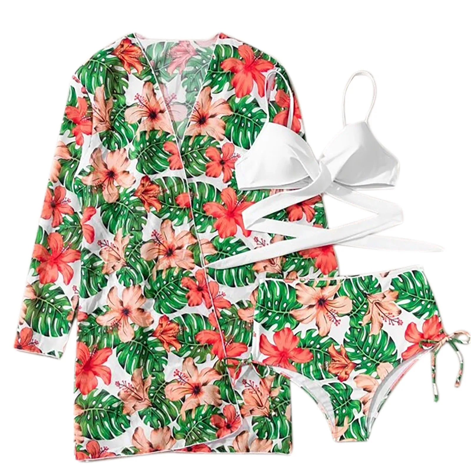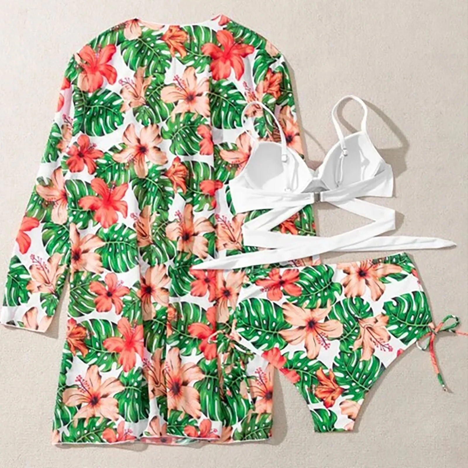 3 шт., женское пляжное платье пуш-ап с принтом