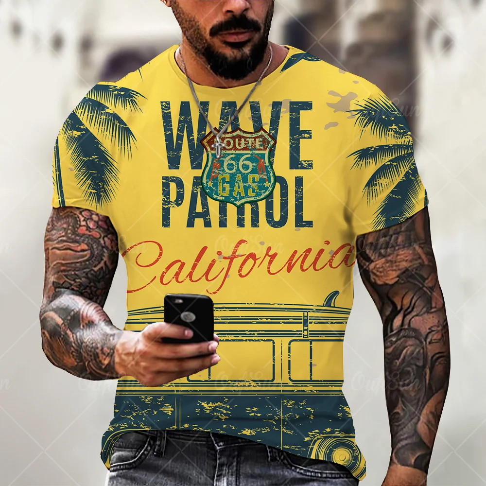 Футболка мужская с коротким рукавом, модная уличная одежда в стиле хип-хоп, Одежда большого размера, с принтом, Route 66