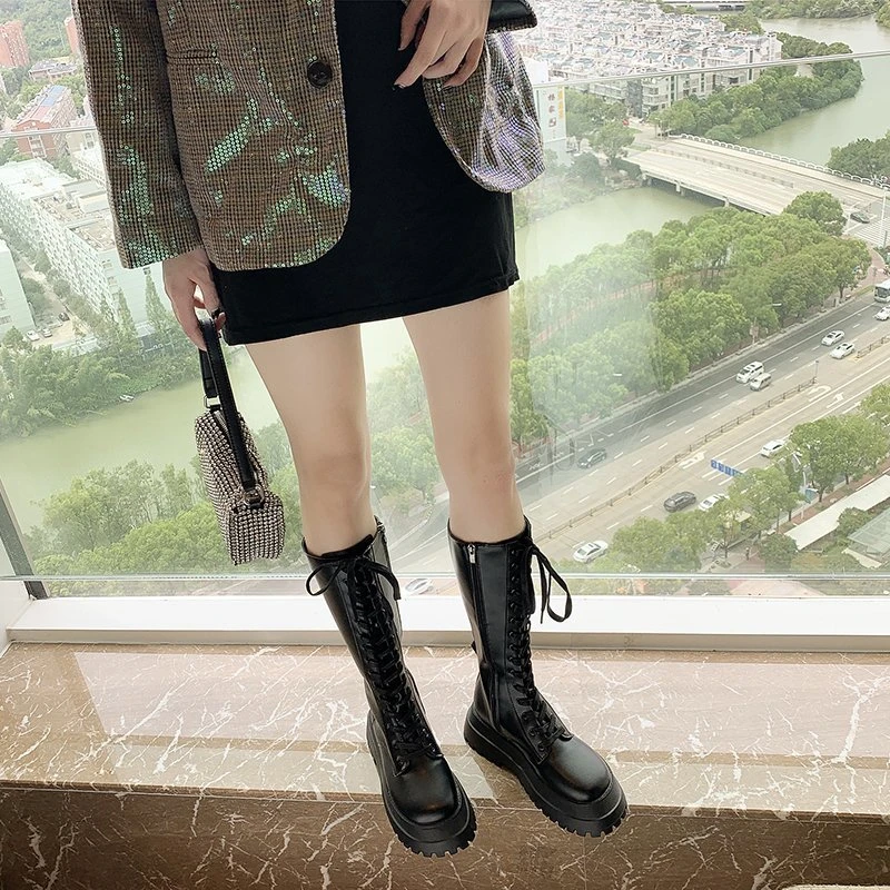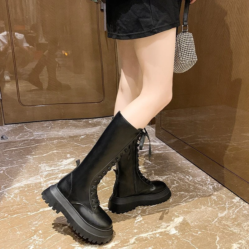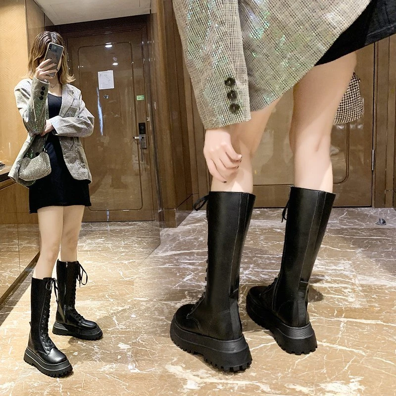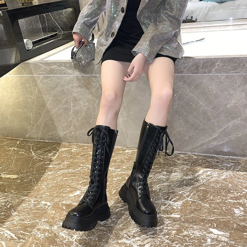 Сапоги женские на высокой платформе, высокие сапоги до середины икры, мотоциклетные ботинки на толстой подошве, обувь в стиле панк, Осень-зима