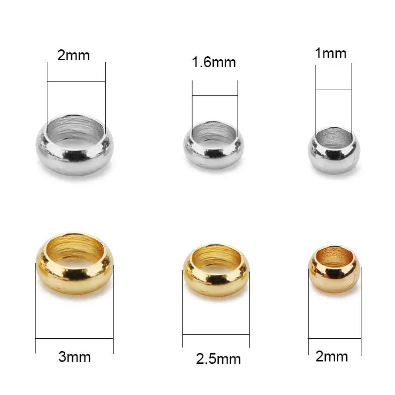 Обжимные концевые бусины из нержавеющей стали золотистого цвета, ди...