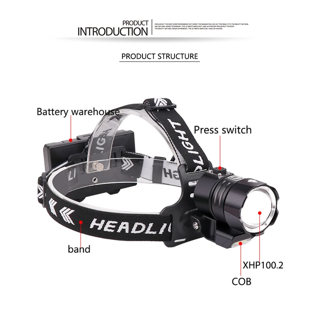 【Название продукта 】:P199 2 * фара COB【Наименование Bulb】:P199 (Теоретический срок службы: 100000 часов)【Тип переключателя: Нажатие выключателя на головке лампы【Рабочая шестерня: главный светильник P160, сильный светильник, низкий светильник, мигающий,-【вспомогательный светильник всегда включен (вспомогательный светильник можно регулировать вверх и вниз)【Цвет 】: белый светильник на голове, красный предупреждающий светильник в конце отсека для батареи【Уровень водонепроницаемости: IPX6 (непромокаемый, защита от брызг)【Рабочее напряжение】: ≥ 3,7 V【Материал изделия 】: алюминиевый сплав с АБС【Способ зарядки: поддержка зарядки micro USB【Режим масштабирования: телескопический зум【Обработка поверхности 】: износостойкое Анодное окисление【Применимый аккумулятор 】:3*18650 7800 мАч (не входит в комплект)[Вес нетто продукта]: 270 г (ручное измерение, есть различия)