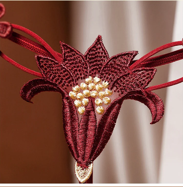 Женское кружевное нижнее белье с цветочным рисунком, стринги с низкой талией, трусики бикини с открытой промежностью, сексуальное нижнее белье, женские стринги с жемчугом
