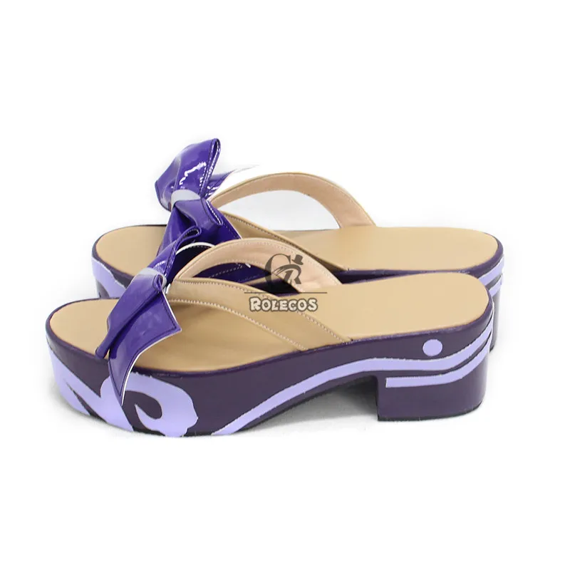 Обувь для косплея ROLECOS Kokomi, игровая обувь для косплея Genshin Impact Sangonomiya Kokomi, Женская деревянная обувь с бантом и бабочками