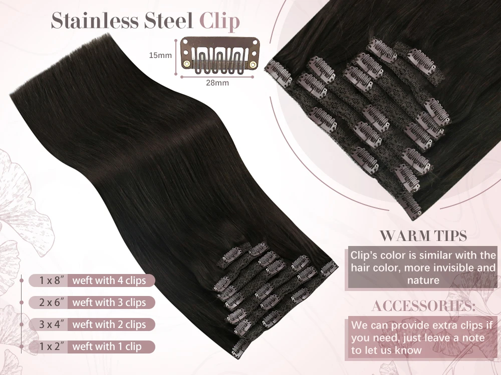 Тип волос: накладные волосы на заколкахМатериал волос: 100% натуральные человеческие волосыВес: 100 г чистые волосы для 7 шт 14-22 дюймов, 120 г включая клипсы;Длина волос: 14-22 дюйма, можно подогнать больший размерФорма волос: шелковистая прямая, имеет естественную волну, когда она влажнаяЦвет волос: все цвета в наличии, если вы хотите заказать другой цвет, свяжитесь с нами.Время доставки: Доставка в течение 72 часов, любые проблемы или потребности, отправьте нам сообщение напрямую. Условия доставки: доставка через почтовое отделение, DHL, FedEx, экспресс-доставка