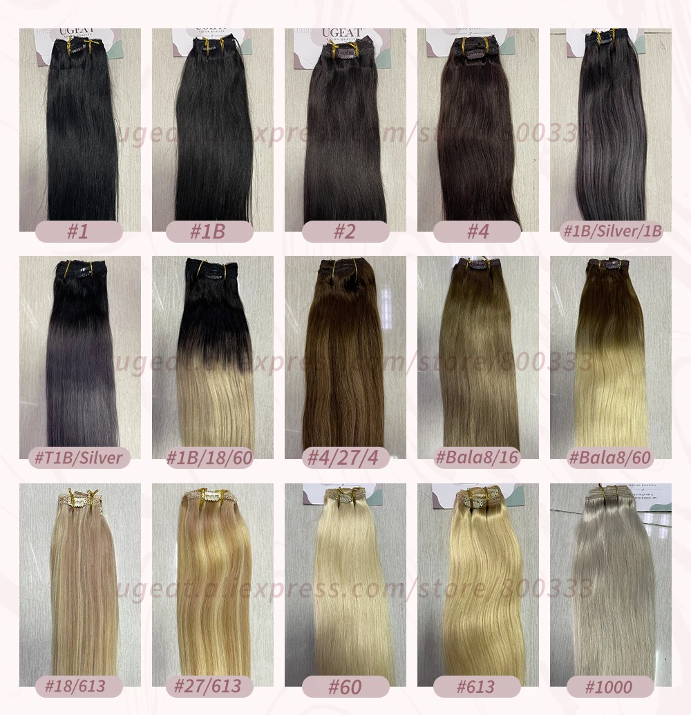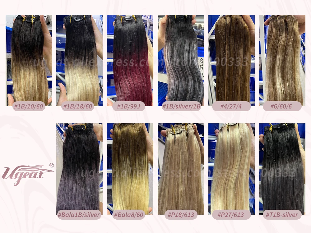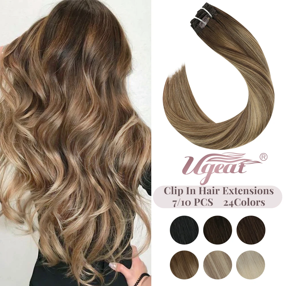 Человеческие волосы Ugeat на заколке, для наращивания волос, с двойным плетением, с балаянием, 7 или 10 шт.