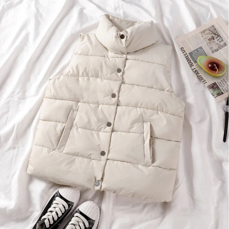 Женский однотонный Короткий стильный жилет на хлопковой подкладке, женская зимняя куртка без рукавов с однобортным воротником-стойкой, повседневные пальто, 2021