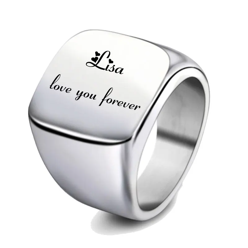 Кольцо из нержавеющей стали с гравировкой имени и изображением домашнего животного