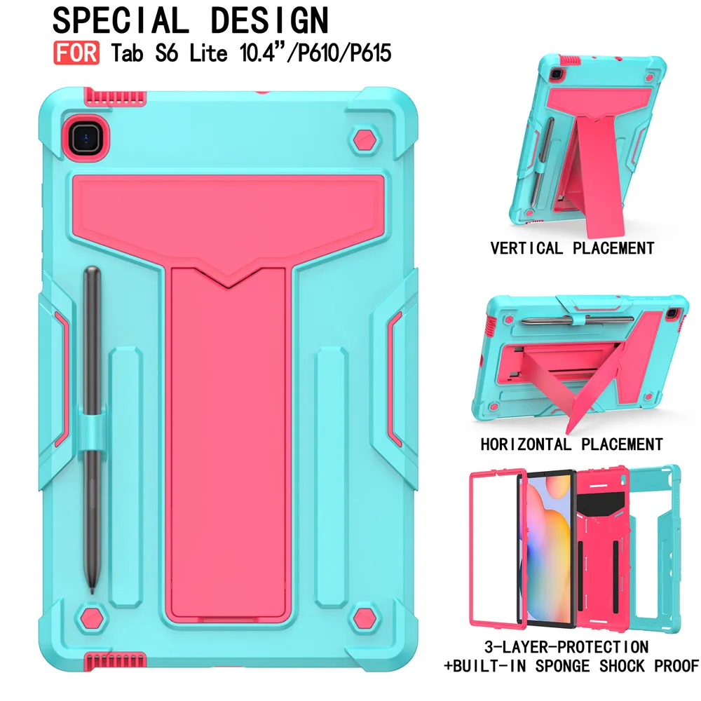 Силиконовый чехол с Т-образным кронштейном для Samsung Galaxy Tab A S6 Lite SM-P610P615 2020 10,5, безопасный для детей, противоударный